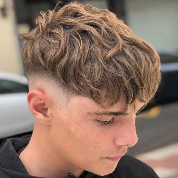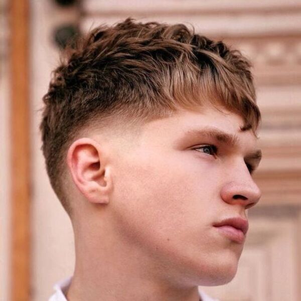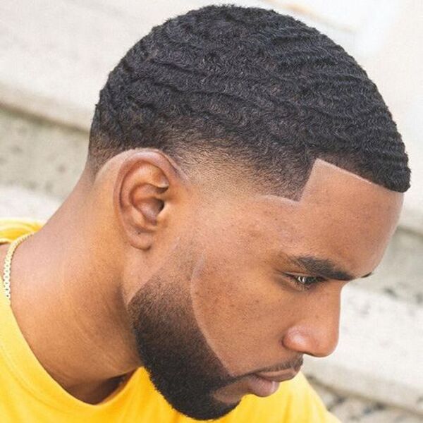 34. Kale tempel vervagen kapsels voor mannen met golven