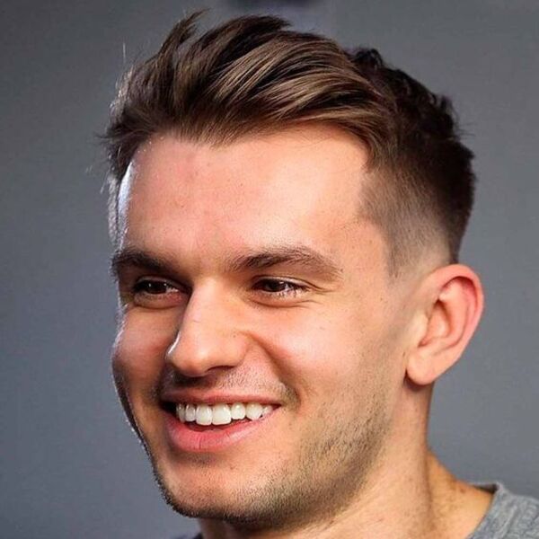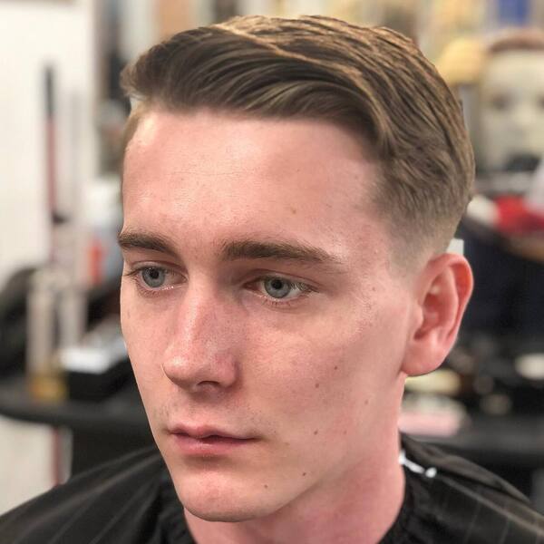 Een kapsel met een kammen zal altijd in de buurt zijn. Probeer enkele haarproducten toe te voegen zodat uw haar de hele dag op zijn plaats blijft. Hier heeft hij een zeer subtiele vervaging recht boven de oren en het ziet er zo goed uit.