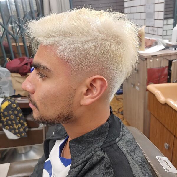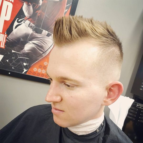 Hvis du ønsker å legge til litt mer farge i livet ditt, ville denne blonde fargen være et flott sted å starte. På bildet over gikk de med en lav fade -hårklipp som smelter perfekt sammen med hans faux Hawk -stil. Det spiller ingen rolle hvilken type hår du har, fordi denne stilen vil være bra for noen.