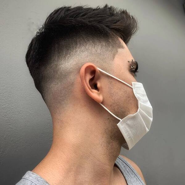 Denne høye top fade-hårklippet for menn kalles en lagdelt faux hauk med en kort fade. Dette ville være en flott frisyre å velge om du allerede har dyrket håret en stund og trenger en ny stil. For å få dette utseendet, ber du først om et tempel falmer rundt ørene, som naturlig blekner inn i det tykke senere på toppen. Deretter må du fullføre utseendet ditt med subtile pigger på toppen.