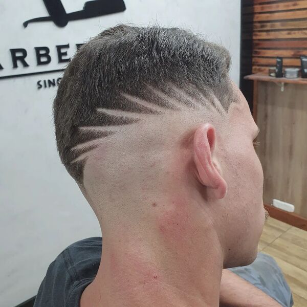 Denne neste stilen er en unik barberhårklippsdesign med en hudfade og en hårdesign gjennomgående. Du kan alltid prøve denne Faux Hawk Fade -hårklippet ut, eller prøve å komme med din unike design i din Fade.