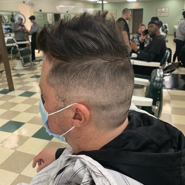 Denne frisyren for menn er en mer sofistikert stil. Han har på seg håret sammen med en avsmalnende falming rundt sidene. Taper Fades er et godt valg for Faux Hawks fordi de starter rett over øret og kan gå så langt tilbake som du velger.