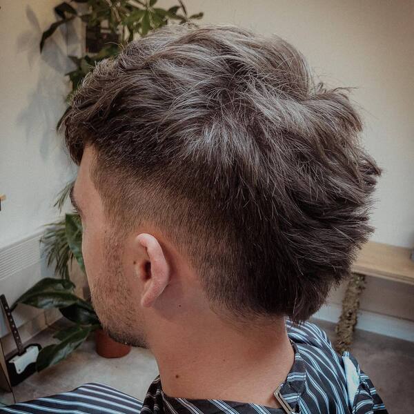 Tykke hår kan være vanskelig å finne riktig frisyre for, og denne tykke rotete stilen kan være din løsning. Her har de et rotete topplag av hår og selvfølgelig en falming langs sidene og nakken.