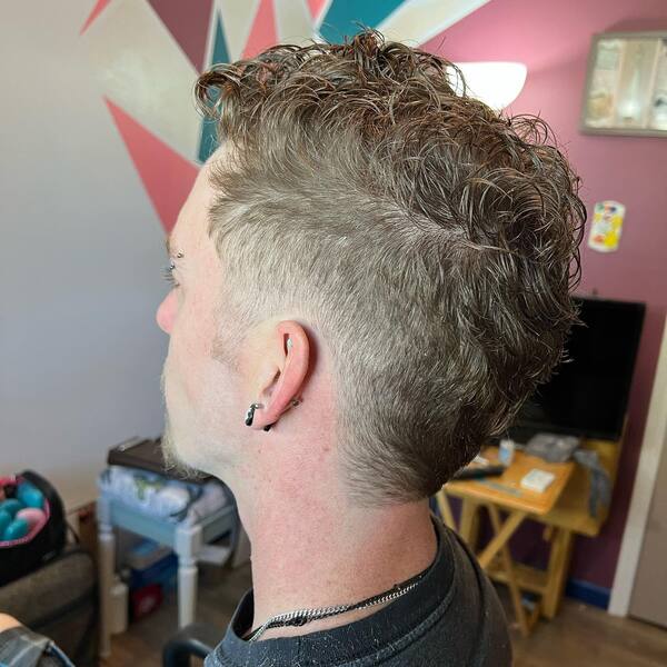 Messige stiler har rett på trend for 2025, og dette utseendet er intet unntak. Dette er en flott frisyre for menn å prøve ut om de har bølget hår. På bildet over har han på seg håret med en rotete faux hauk og et temperament fade, og det ser så bra ut.