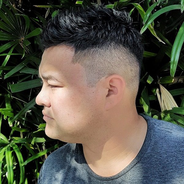 Her er en stil for menn som har tykkere hår. Denne stilen kalles en tykk svart faux hauk med en kort og enkel falming rundt ørene. Tykke hår kan være vanskelig å finne riktig hårklipp for, og på grunn av det har denne stilen noen få forskjellige lag med lag som tilfører tekstur i håret.