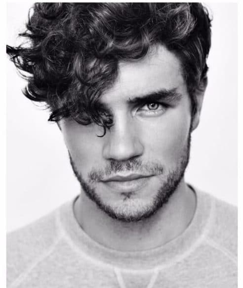 Aqui está uma versão adorável do que normalmente chamamos de penteados médios para homens. O corte de cabelo é curto nas costas e nas laterais, mas tem um top com fios longos e franja. Oh, nós mencionamos os cachos que tornam alguém absolutamente fraco de joelhos?