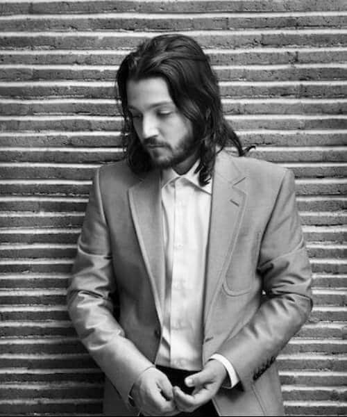 O ator Diego Luna é a prova de que penteados médios para homens podem realmente trabalhar para qualquer pessoa, incluindo homens magros que tenham uma construção esbelta e delicada. Se você é um deles, o cabelo mais longo lhe dará uma vibração muito artística, bem como uma presença hipster.