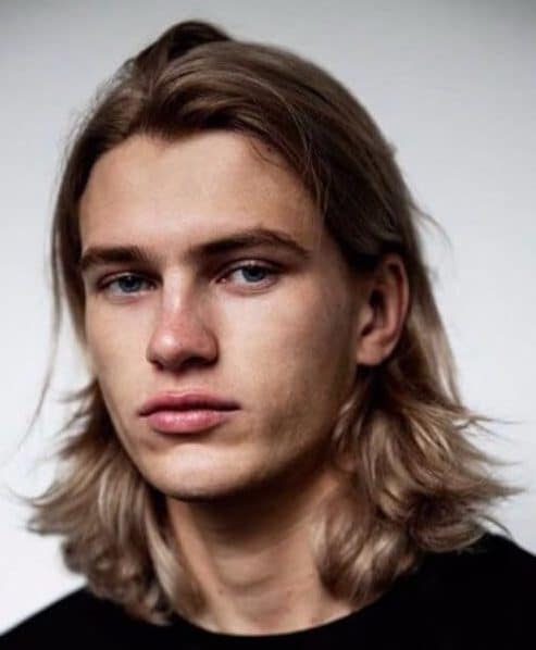 Penteados médios para homens podem ser uma ideia fabulosa se você tiver uma incrível cor natural de cabelo, como esta loira bege cremosa. O comprimento e o estilo do cabelo mostrarão a cor perfeitamente. Caso contrário, você sempre pode tingir.