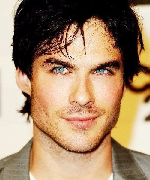 Além dos penteados médios para os homens, há outra coisa para você usar como inspiração aqui. Esta é a cor do cabelo bem feita. O ator Ian Somerhalder escolheu um tom muito escuro de marrom chocolate que destacou seus olhos azuis muito claros. Quão encantador pode ser isso?