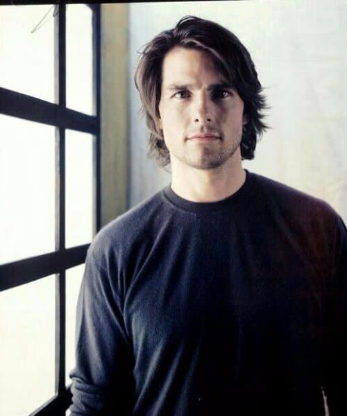 Longe vão os dias em que Tom Cruise costumava usar um corte militar para seu papel no Top Gun. Agora ele ama os penteados médios muito mais lisonjeiros para homens, penas e camadas, já que o Sr. Cruise tem cabelos finos.