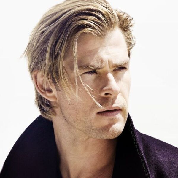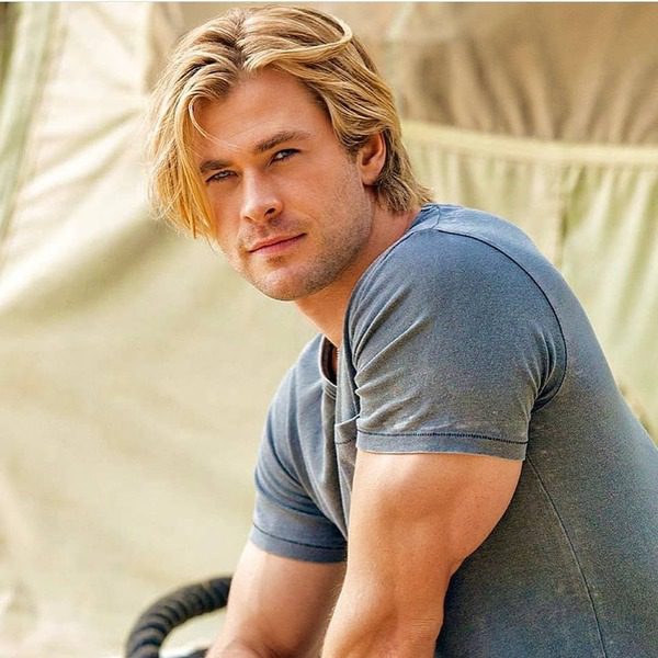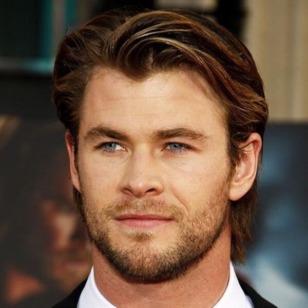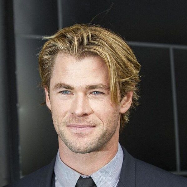 Acest stil accidentat a fost probabil pentru un film, deoarece nu se potrivește cu coafurile tipice Chris Hemsworth. Cu toate acestea, el arată în continuare excelent, cu părul lung lung de umăr, despărțit pe mijloc, cu bretele de perdea.