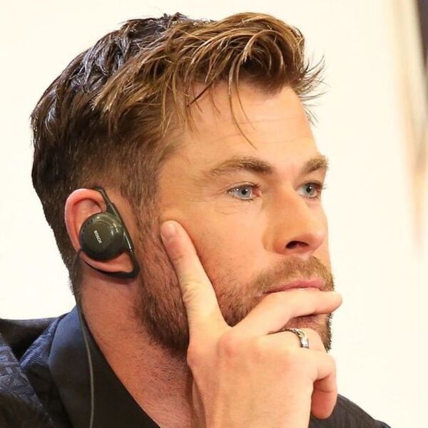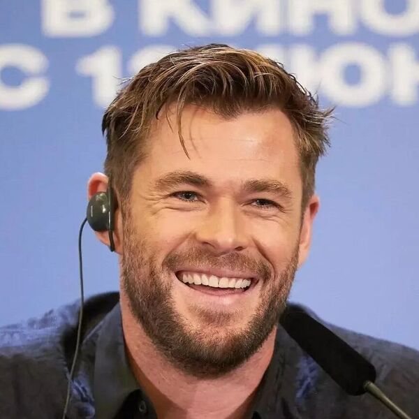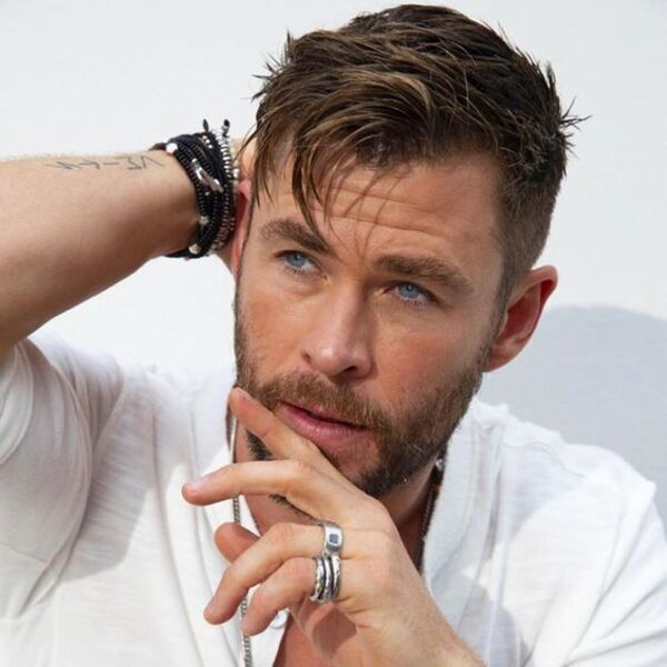 Următoarea coafură Chris Hemsworth este o tunsoare scurtă. O tunsoare Quiff este un stil care menține frontul semi-lung și părțile laterale tăiate cu o oarecare estompare; În aspectul de mai sus, el a menținut părțile lungi și a tăiat în jurul firului natural al părului.