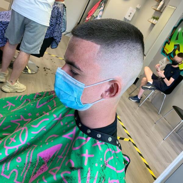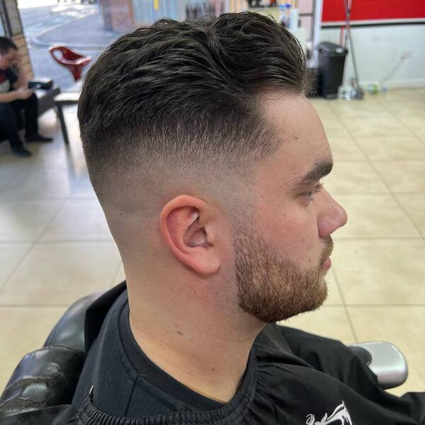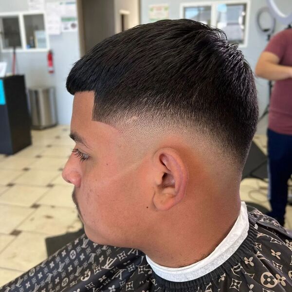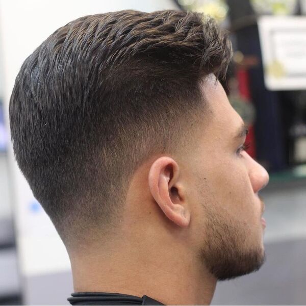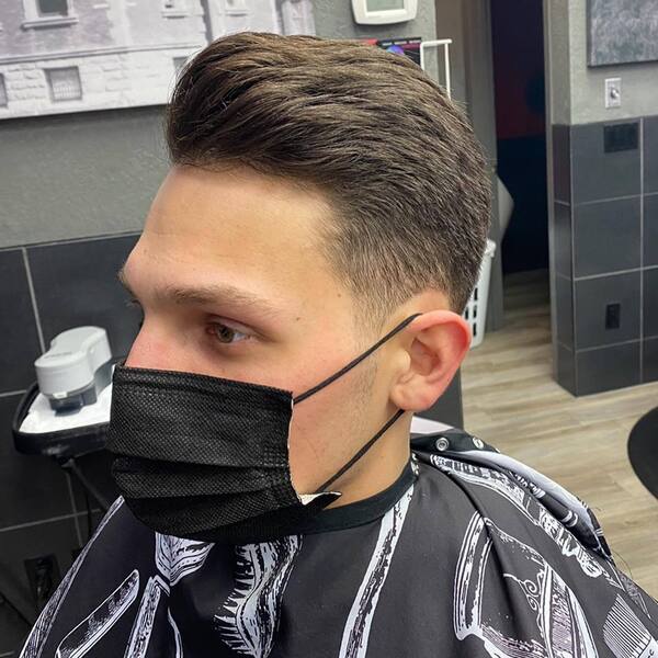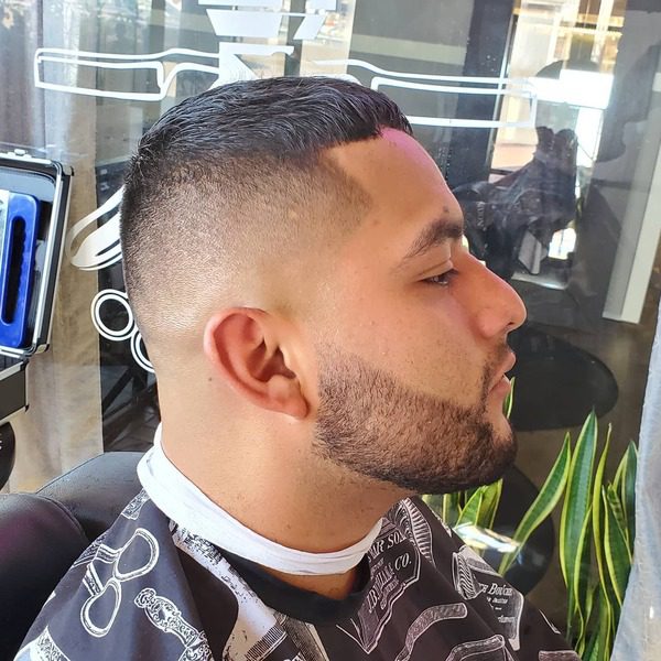 Här är en annan barbersnedskärningar för dig för att se hur de kan skilja sig åt. Han har också lagt till trimmade sidor runt den naturliga hårfästet för att hålla kanterna ser fräscha ut. Du bör prova den här frisyren för män om du är osäker på vad din följande stil ska vara.