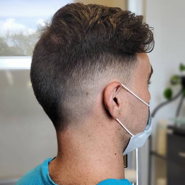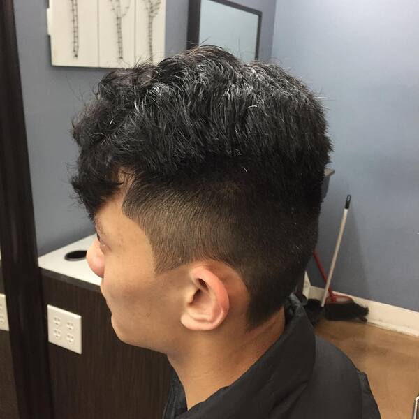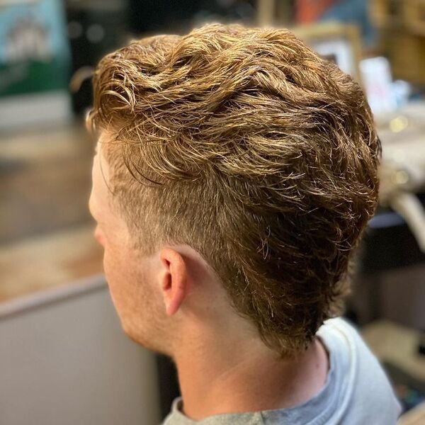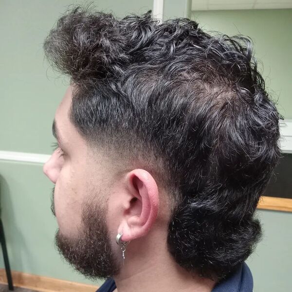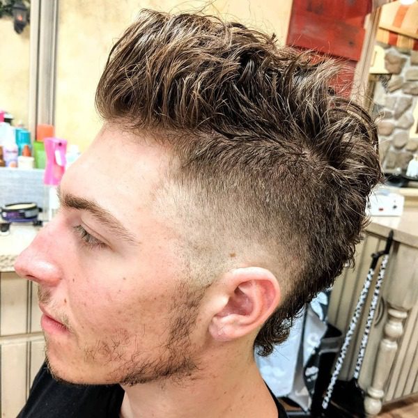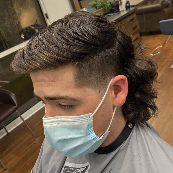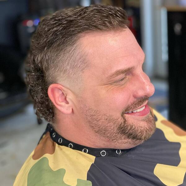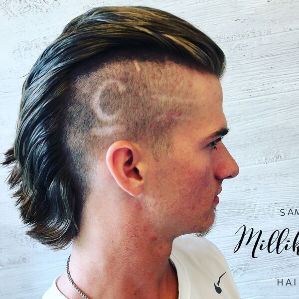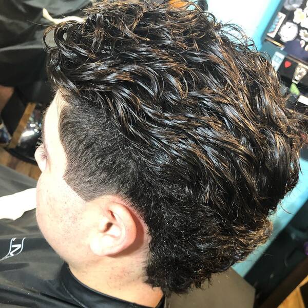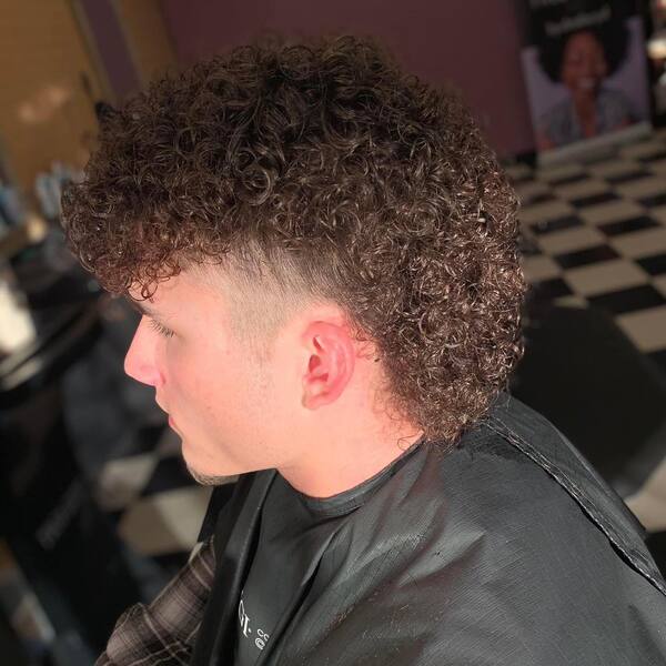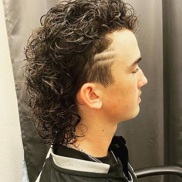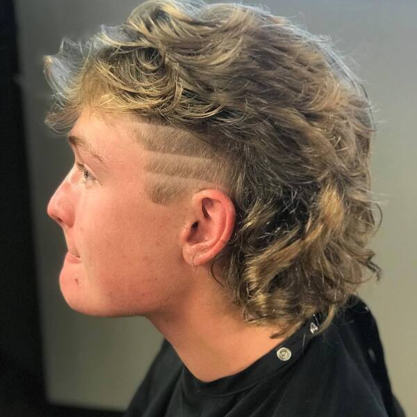 För en frisyr i gamla skolan med en modern twist, prova denna röriga lockiga mullet. Denna frisyr för män skulle fungera bäst om du har naturligt lockigt hår. När ditt hår är fuktigt, försök att lägga till lite mousse och krossa håret tills du har de perfekta lockarna. De har också lagt till några cut-in-mönster i Fade, det lägger lite extra till frisyren.