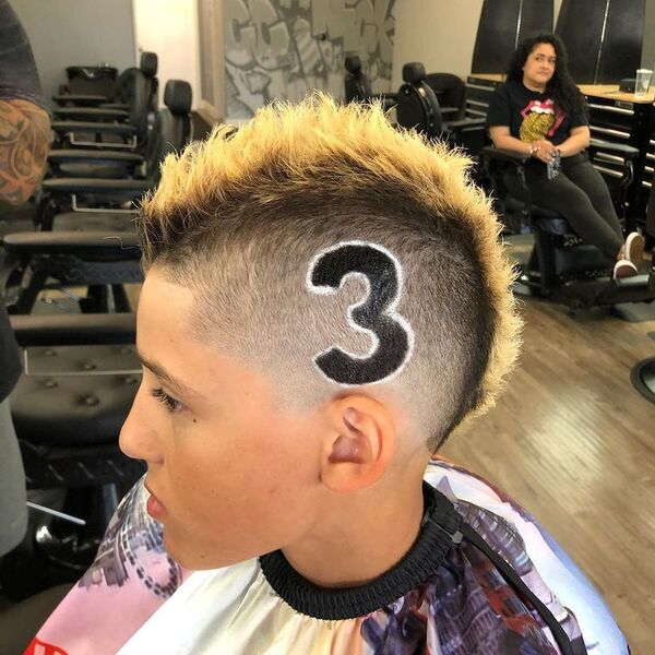 Här är basebollfrisyren vi pratade om var du kunde få ditt nummer på sidan av huvudet. Han tog sin blekta Mohawk ett steg längre och lade till ett stort nummer 3 till sidan av huvudet för en cool och festlig frisyr.