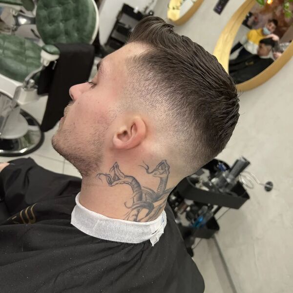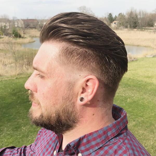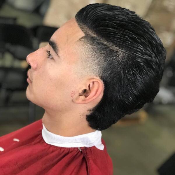 Därefter är denna klassiska barberare klippt med en underskurt tillagd. De höll hans underskurna trimmade runt den naturliga hårfästet och lämnade hårets topp tillräckligt länge för att utforma på något sätt du ville. Detta skulle vara en fantastisk frisyr för män att prova eftersom det är så mångsidigt att du kan bära den på baseballfältet eller det stora mötet; Hursomhelst kommer du att älska hur du ser ut.