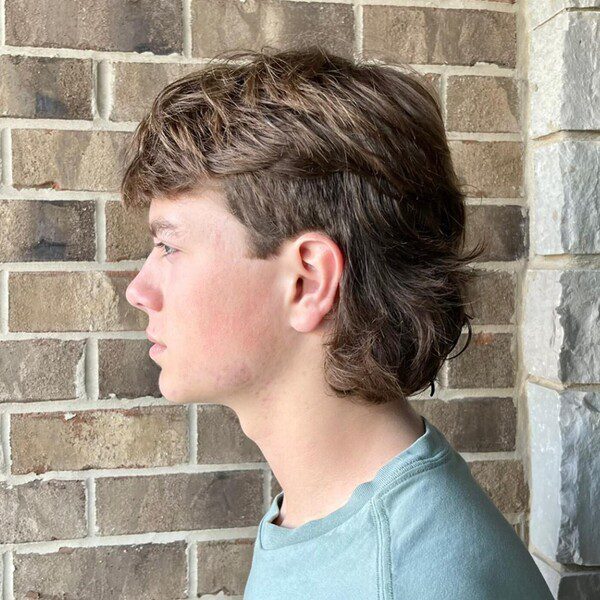 Nästa är en stil som har lite rörig vibe. Det kallas en mullet med en strukturerad topp och en rörig rygg. Alla mulletter har i huvudsak en rörig rygg, men på bilden ovan ser det ut som om han har naturligt lockigt hår, vilket gör att det ser smutsigare ut.