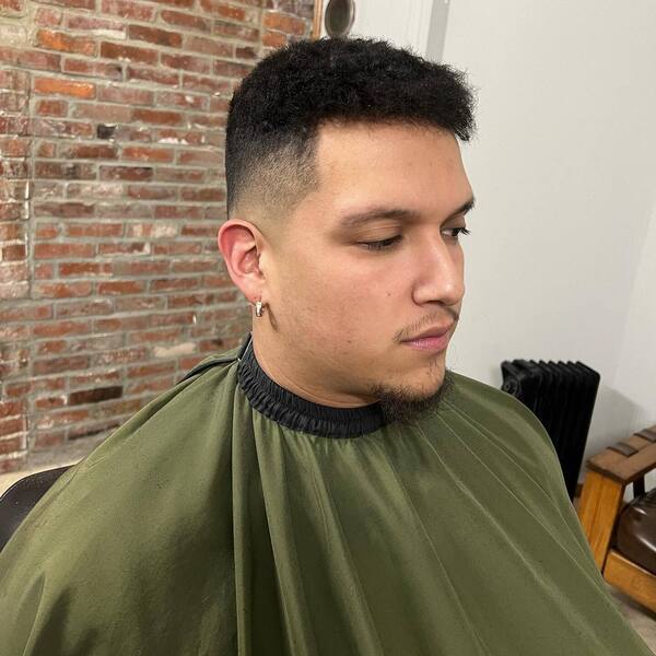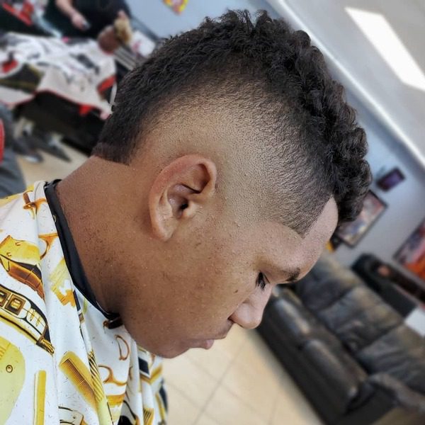 36. Curly Faux Hawk med Burst Fade Baseball Haircut