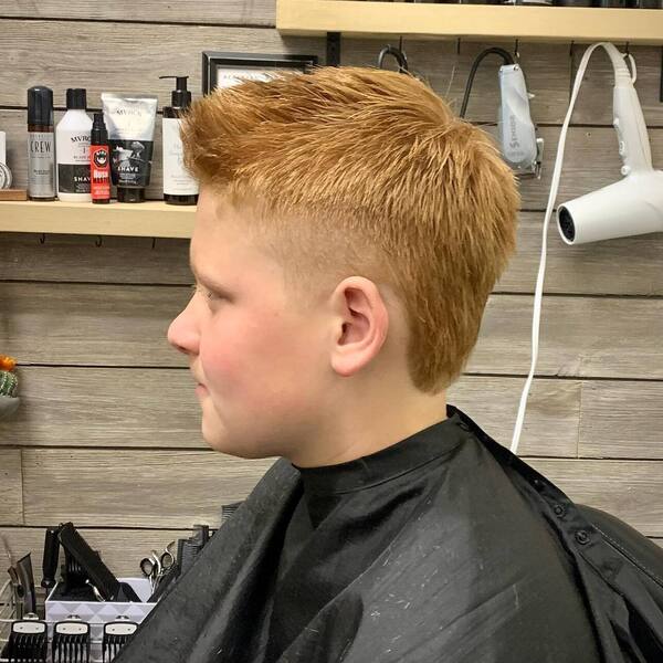 Här är en annan grödskärning, men den här har en låg blekning tillagd. Om du tittar noga lämnade de den främre delen av håret lite längre än resten så att han kan spikas upp när han är på humör.