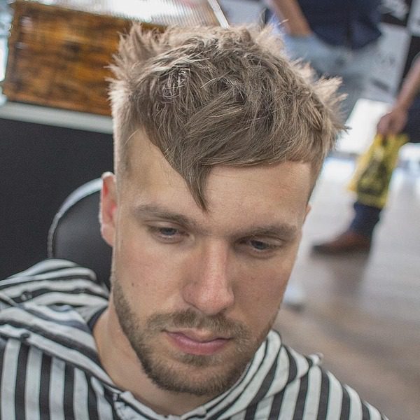 Texturerat spiky hår är en look som har funnits för alltid, och det går inte någonstans, när som helst snart. De parade detta spetsiga utseende med en mitten av blekning runt ryggen och sidorna. Du bör alltid be om en blekning eftersom det inte bara håller sidorna och ryggen trimmade, utan det gör det mer naturligt.
