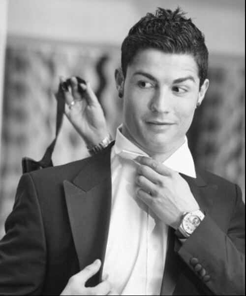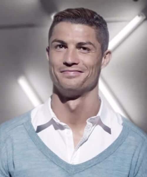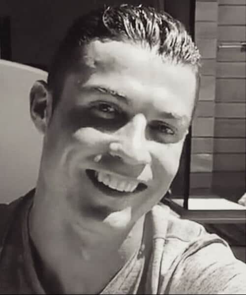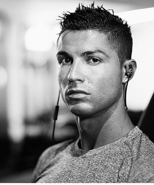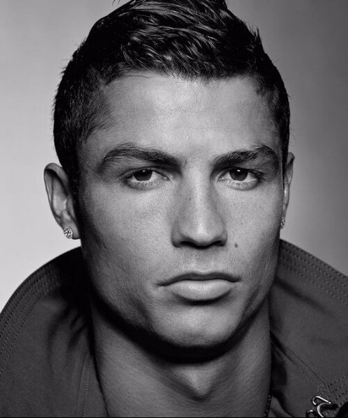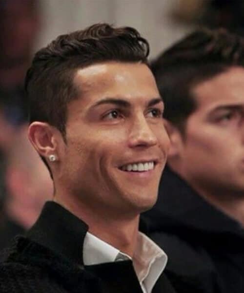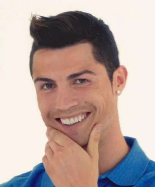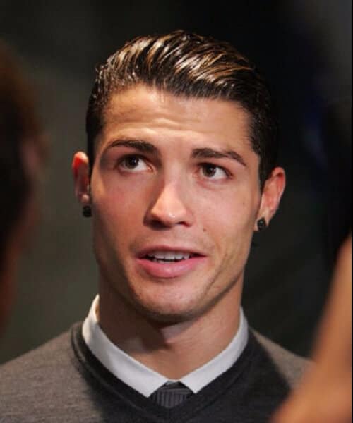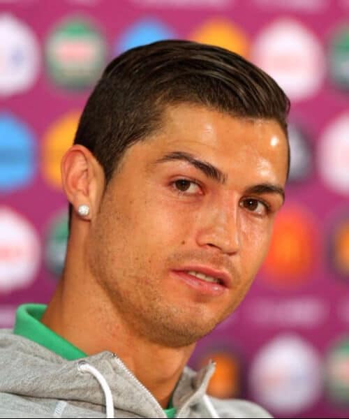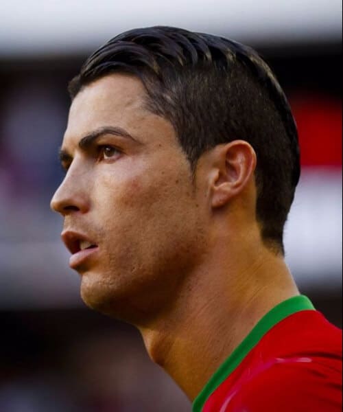 När det gäller Cristiano Ronaldo -frisyrer är denna quiff en av våra favoriter. Det är så enkelt, och ändå så charmigt, vilket ger honom pojkig snygg. Han sportar också här vad vi tror är en färg nära hans naturliga nyans, som är mörkbrun.