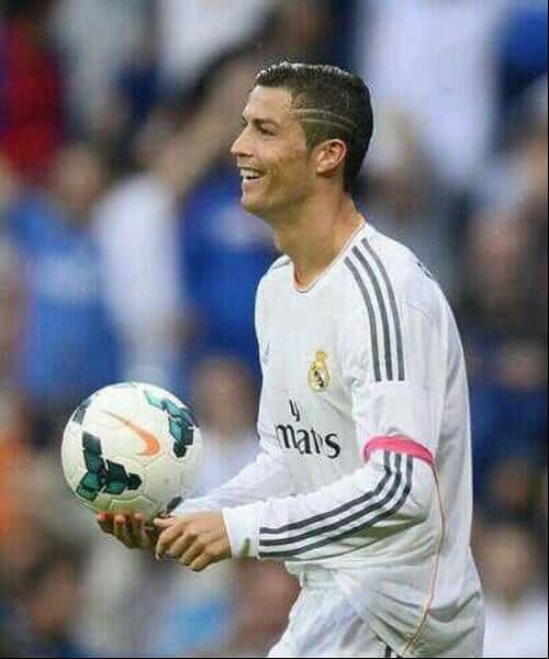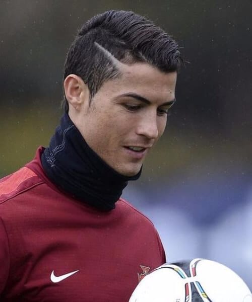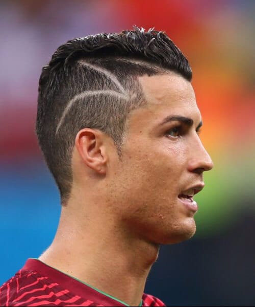 Här är Cristiano som sportar en mycket funky toppdel av huvudet, medan sidorna är snyggt trimmade, som vanligt. Det fantastiska med detta snitt är att det lägger till några tum höjd om du saknar dem.
