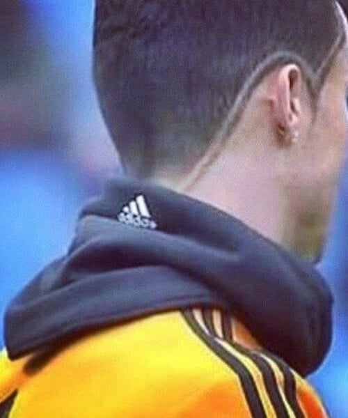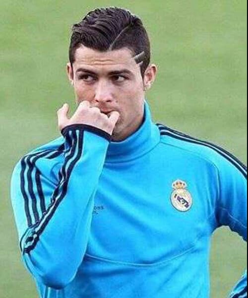 När det gäller en Cristiano Ronaldo -frisyr är detta en av häftklamrarna. Det är ett otroligt enkelt och enkelt pojkigt snitt som har utsmyckats med två parallella rakade linjer.