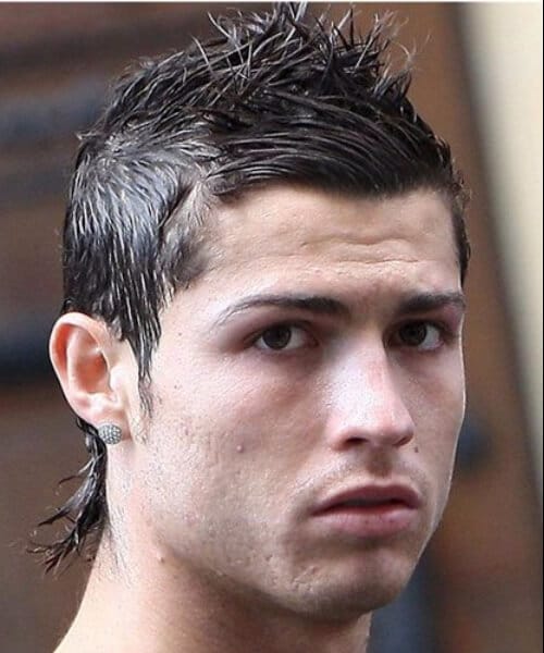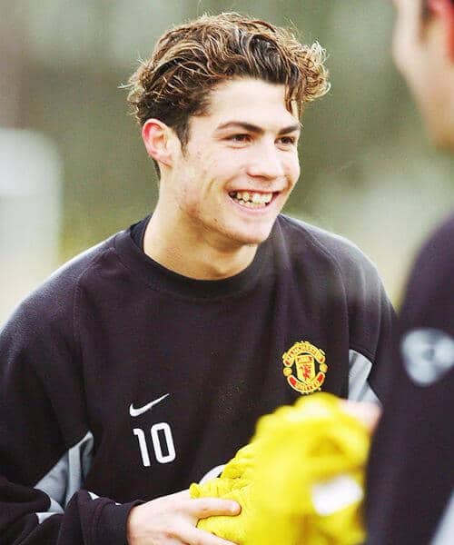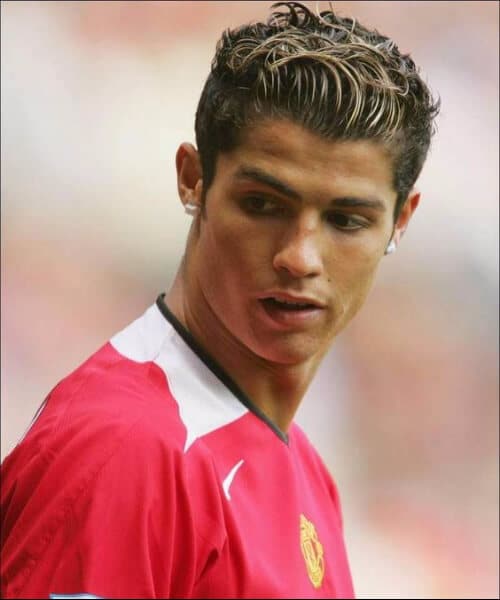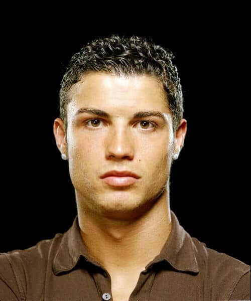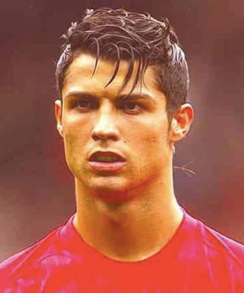Tillbaka på dagen, när han inte var lika berömd och som på mode och styling som han är idag, brukade Cristiano sportar mycket mer naturliga frisyrer. Här kan du se att han har naturligt lockigt hår , som han brukade bära i medellång längd.
