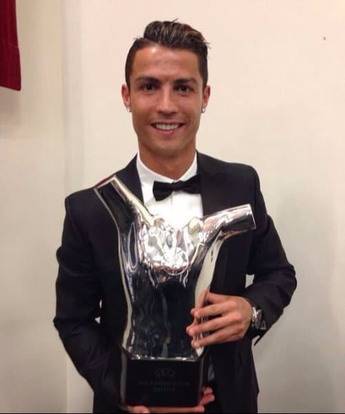 Vid det tillfälle som han fick en av sina ballonger Dor, gick Cristiano Ronaldo för en superen enkel men ändå elegant och dapper -frisyr. Han gjorde rätt val, eftersom ingenting borde ha stulit åskan bort från sin fantastiska kostym och naturligtvis pris.
