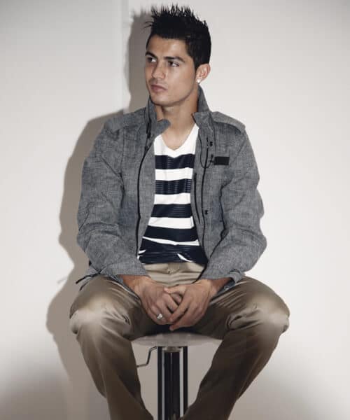 Här använder han sitt naturligt lockiga hår till god användning genom att sportera en mycket höft fauxhawk . Om du vill återskapa det här utseendet behöver du lite hårgel. Som du kan se från det här skottet lyser Ronaldos -håret positivt med hårvårdsprodukten.