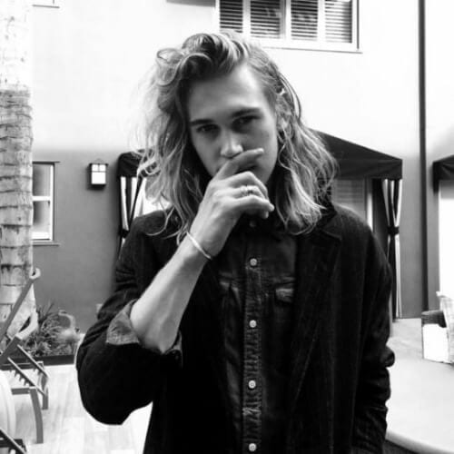 Här är en annan tar på mäns axellånga frisyrer som du kan försöka följa. Austin Butler hade blondt hår som han bar på och skilde sig på sidan. Kylfaktorn är dock helt upp till dig.