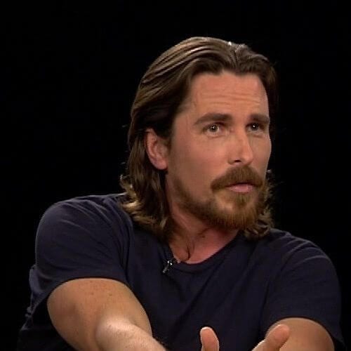 Från Marvel till DC, här en titt på Batman (en av dem) själv. Mellan projekten bar skådespelaren Christian Bale sitt axellånga hår i sitt naturliga bruna och parade det ofta med ett mycket välvårdat skägg och en ganska buskig mustasch .