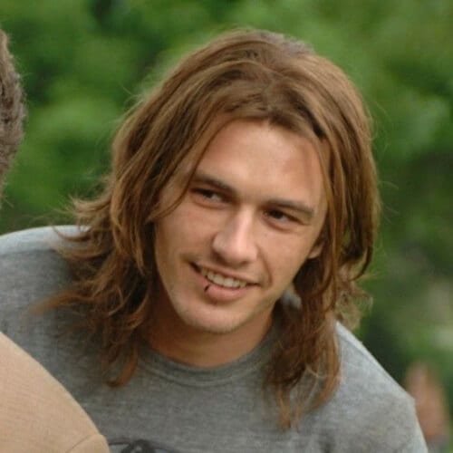 Finns det någon frisyr som skådespelaren James Franco inte ser bra ut i? Detta är en ljusbrun raggig frisyr med en mittdel som belyser hans kafffärgade ögon. Han bar det för en av sina filmer.