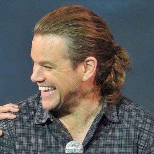 När det gäller mäns axellånga frisyrer har Matt Damon fått det låst. Han växte ut håret för en av sina roller och brukade på sin off-tety tid bära det i en enkel hästsvans på baksidan av huvudet. Bind håret bakom och ser snyggt och elegant ut.