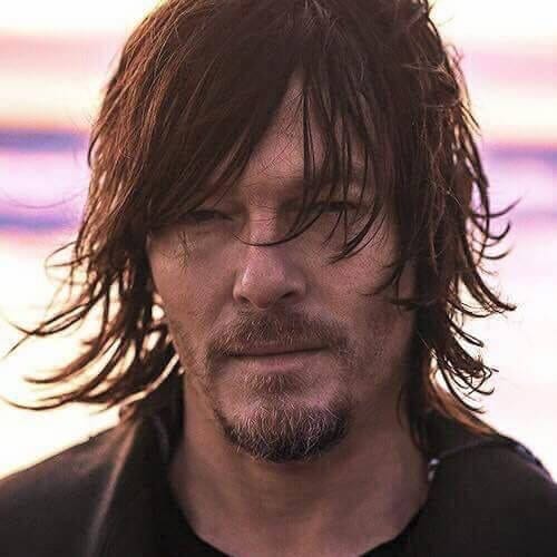 Var tillbaka till skådespelare när vi fokuserar på Norman Reedus och hans våta utseende. Norman har längre än genomsnittliga lugg och en skiktad frisyr för att matcha. Han sportar också en get .
