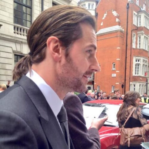 Han är en fantastisk och stilig skådespelare som du kanske känner bättre som Thorin. Richard Armitage blev berömd över hela världen när han spelade den ledande dvärgen i Hobbit . Här är han med en liten hästsvans.