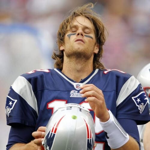Fotbollsspelaren Tom Brady har mörkt blont hår som han bär i mäns axellånga frisyrer. Snittet är ganska enkelt och liknar en modern mullet i ryggen med växtvuxna lugg och en fjädernig finish.