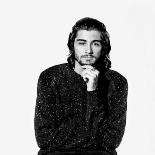 En annan tidigare medlem i One Direction som växte ut håret ett tag är Zayn Malik . Han brukade slicka det hela tillbaka med lite hårvax och lät de vågiga låsen falla slarvigt ner på axlarna.