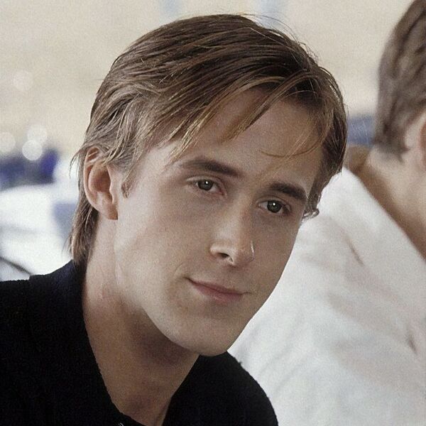På den här bilden ses Ryan Gosling ha på sig en ganska lång frisyr. Denna gardinfrisyr var en av de frisyrer vi kunde se i Ryan Gosling några decennier tillbaka.