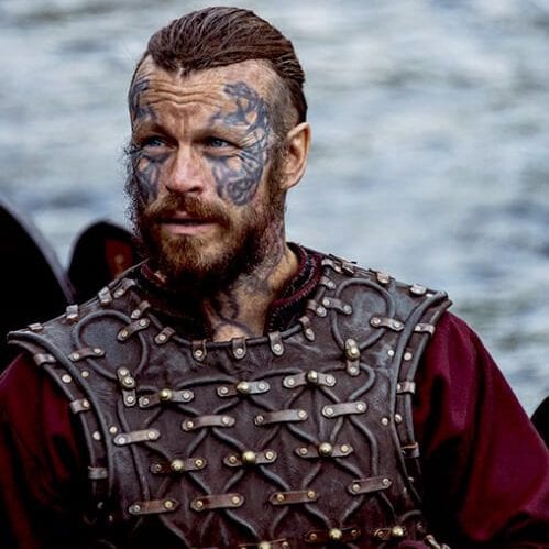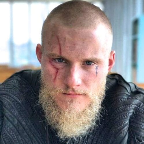 Vi har redan sett skådespelaren Alexander Ludwig som Young Bjorn Ironside, kung Ragnarars son. Här är han äldre och med en annan inställning till Viking -frisyrer. Precis som sin far klippte han också håret till ett surrskur men höll skägget.