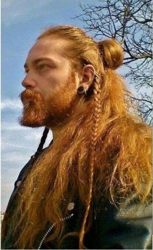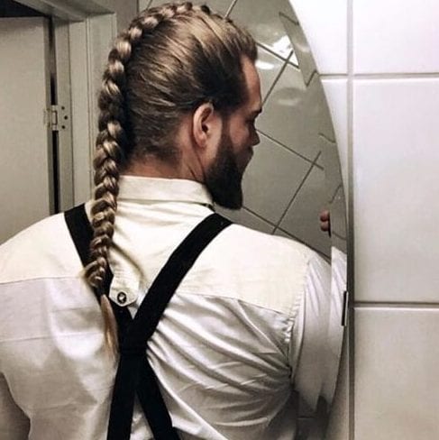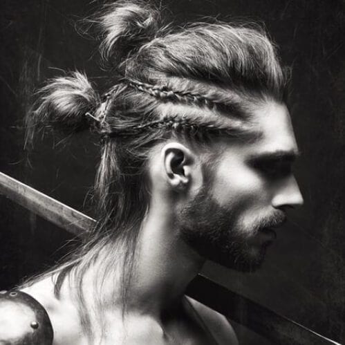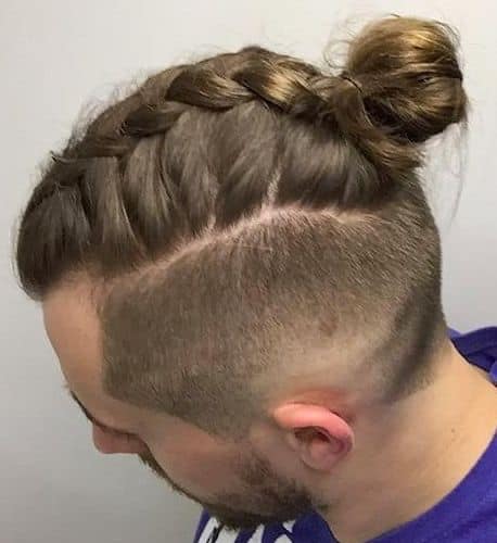 6. Jumbo French Braid Bun Style Viking Haircut for Men