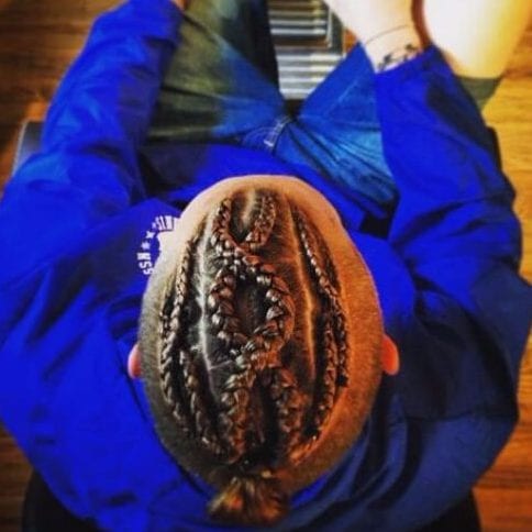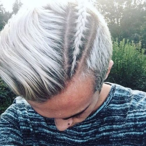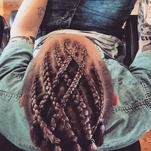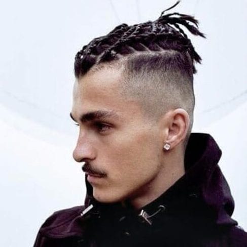 Ett annat sätt där du kan utforma Man -flätor är att korsa dem ovanpå ditt huvud. På detta sätt kommer du att sluta med en fantastisk sammankopplad väv av flätor som slutar i en liten hästsvans. Låt utseendet sticker ut ännu mer genom att para ihop den med rakade sidor .