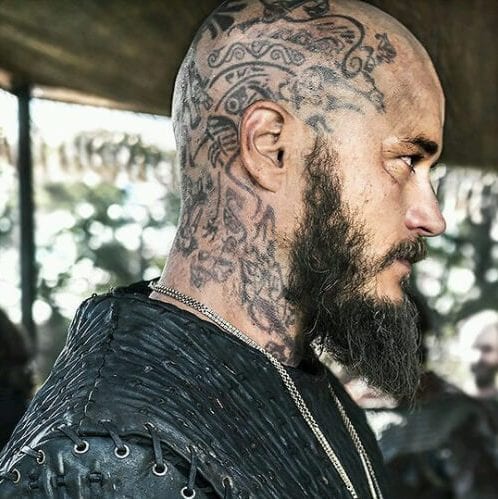 När serien fortskrider får vi också se den gamla Ragnar och hur vikingfrisyrer kan ha åldrats genom åren. Gamla Ragnar bar huvudet helt rakat i straff och ånger för döden av en av hans bästa vänner. Dessutom hade han fortfarande ett buskigt skägg, liksom Viking -sedvanen och lade ännu fler tatueringar i hårbotten.
