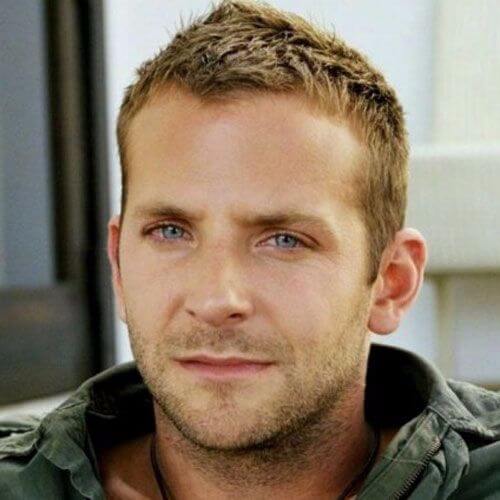Ordu mürettebatı kesimi bize burada Bradley Cooper'dan başka hiçbir şey tarafından güzel bir şekilde açıklanıyor. Dağınık saç modeli onu doğal olarak yakışıklı gösteriyor ve sadece yataktan çıkmış gibi. Bunun dışında, üstteki sivri uçlar yüzünü uzatır ve özelliklerinde çok ihtiyaç duyulan bir denge yaratır. Sivri bir çeneye sahip olduğu göz önüne alındığında, aynı saç şekli bir denge yaratır.