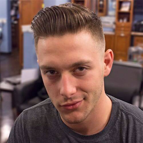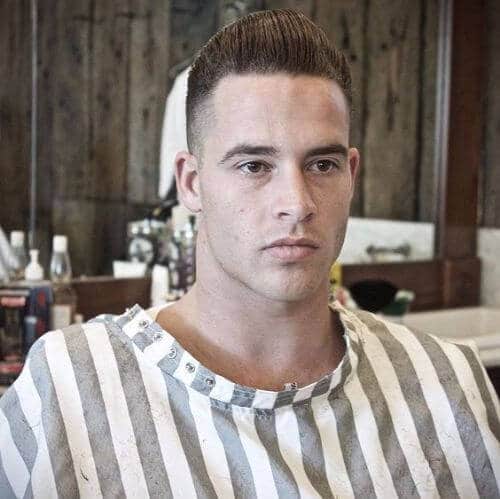 #17. Erkekler için kısa bir pompadour saç modeli ile askeri kesim