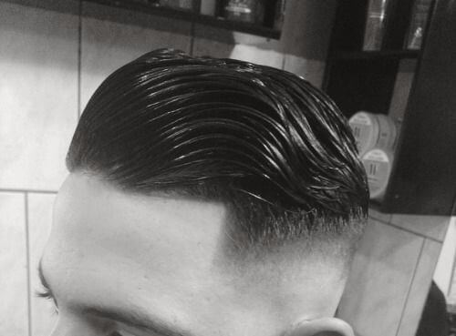 İşte tamamen sınıfla ilgili bir askeri saç kesimi. Resimdeki beyefendi, parlak bir yüzey için fırça sıraları ve çok sayıda saç bakım ürünü ile mükemmel bir şekilde ayrılmış bir saç stiline sahiptir.