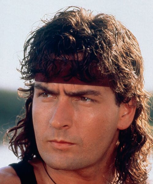 Це актор комедії Чарлі Шин в одному з найкращих його фільмів "Hot Shot" . Це пародія на кілька встановлених фільмів, наповнених махізму, такі як Top Gun та Rambo, яка швидко стала легендами. Шин грає на лідерах у всіх них, і, звичайно, спорту, фантастичний кучерявий і кошенячий кефаль.