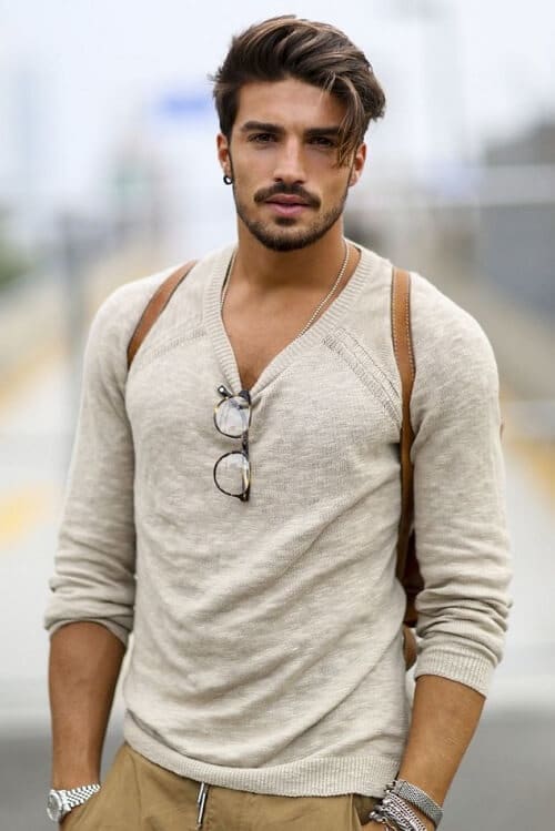 Коли ви шукаєте зачіски, щоб підійти до вашої бороди , враховуйте також форму обличчя. Цей штучний яструб з поворотом улесливо для всіх типів обличчя і добре поєднується з бородою та високим вмінням, завершуючи прохолодний сучасний вигляд.