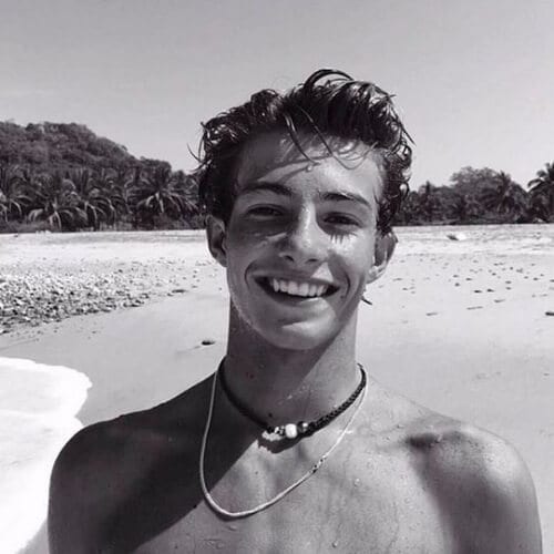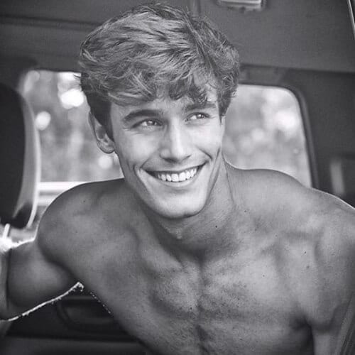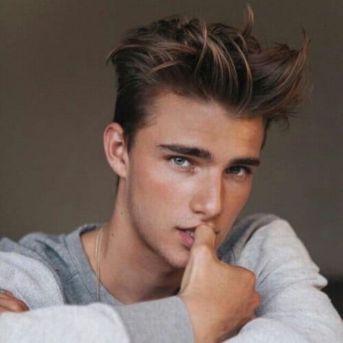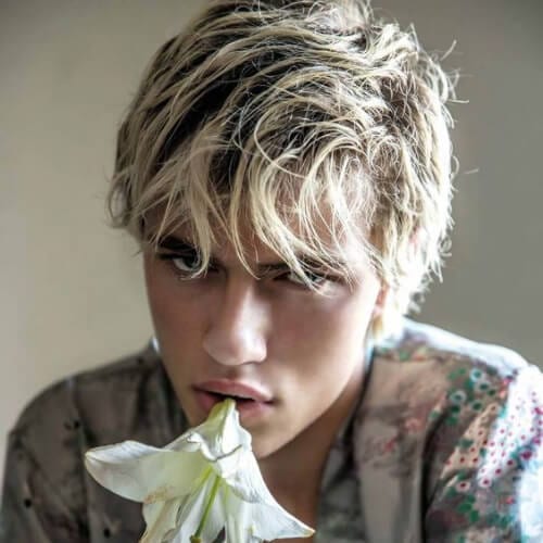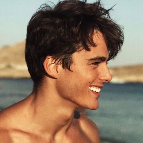 Ця коротка стрижка для густого волосся ідеально підходить для хлопчика -серфера, оскільки, схоже, це було вітром, поки ви тривали довгі прогулянки по пляжу. Не забудьте додати додатковий лак для волосся і носити вітряк.